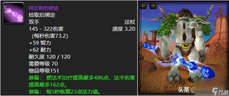 既然说到狂野之柱,那么阿克蒙德的阿古斯使徒也必须是要抬上来给大家掌掌眼的。颜值同样没问题,有问题的就是这东西为啥没精神反而给了不俗的五回,虽然对于追求极致精神的牧师以及奶德总感觉欠缺了点什么,但是能用也帅气,还是值得推荐的。