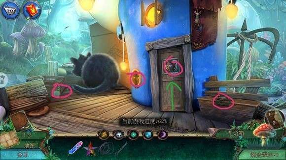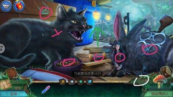 猫食盆——点击盒子——点击盆右侧的夹子撬开盆里盒子——束发夹、魔法符