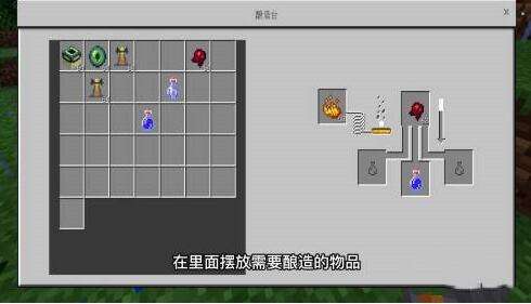 2、然后打开酿造台,将想要制作东西所需的材料都放入到里面。