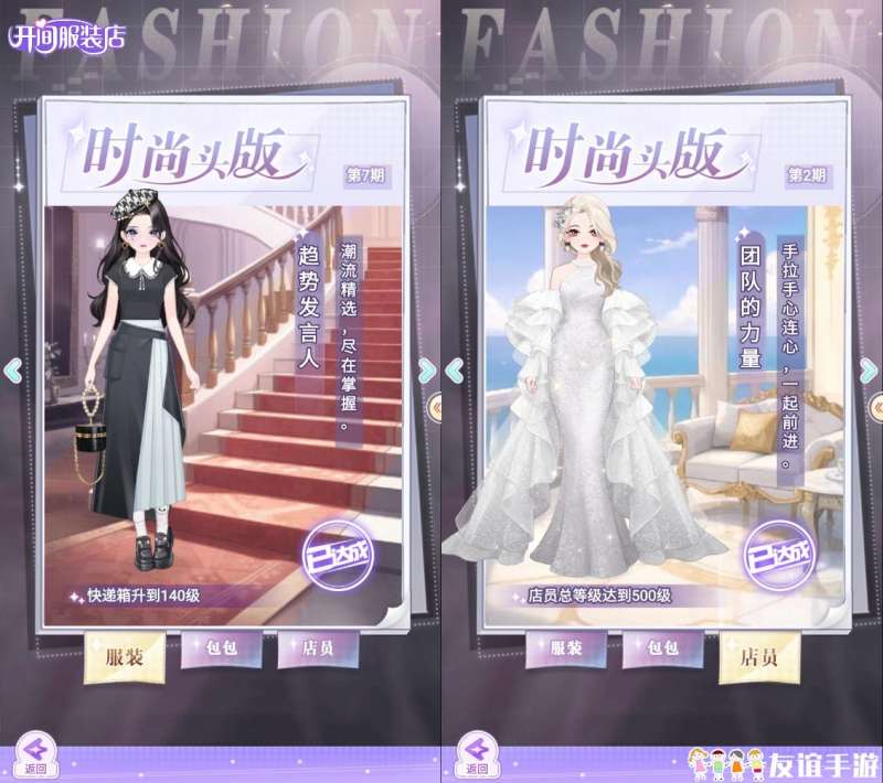 • 服装秀:店长等级飙升,全新一期杂志立马解锁!领取奖励的同时,还能在穿搭广场炫耀你的《时尚头版》搭配,让全世界都知道你的品味有多赞!