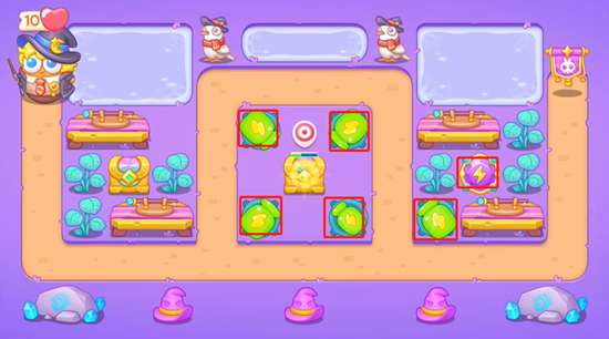 2、宝箱里开出的是水晶,我们现在四个角落放好足够多的瓶子炮,然后继续把剩下的所有道具全部打掉。