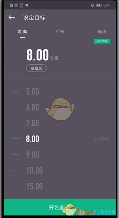 4、选择公里数,点击开始跑步
