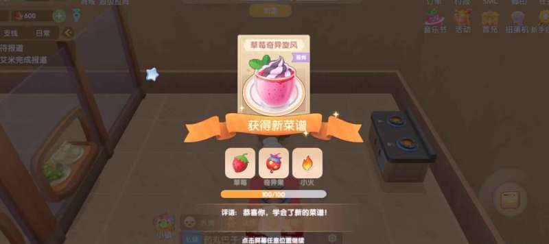 特制旋风糖浆:这是游戏中的特殊材料,需要玩家通过完成特定任务或活动获取。糖浆的甜度和粘稠度决定了草莓奇异旋风的最终风味。
