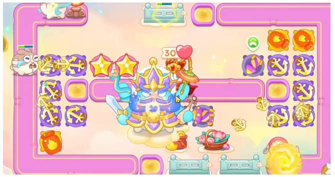 6、今天遇到的是终极天王,如果大家剩余障碍物比较多的话,建立大家绕开天王清理,根据天王移动的路线建立船锚。