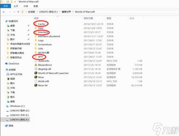 4、把WOW文件夹里的Interfance Cache WTF三个文件夹里的东西全删除了试下。
