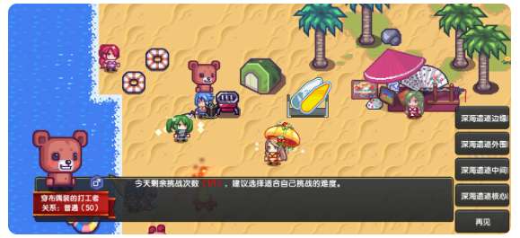 在拉斐尔举办的夏日沙滩中-【穿布偶装的打工者处】进入,每天可选择一个难度进行挑战