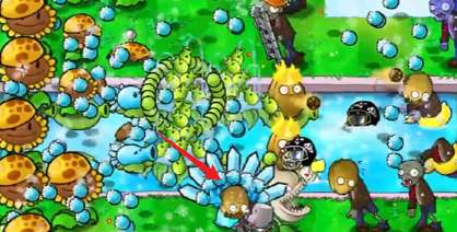 5、可以在血量较厚的僵尸前面放置一个雪花寒冰菇。