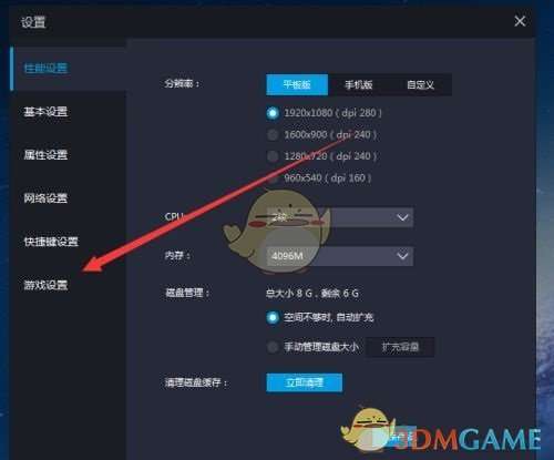 3、然后点击左边的“游戏设置”(如图所示)。