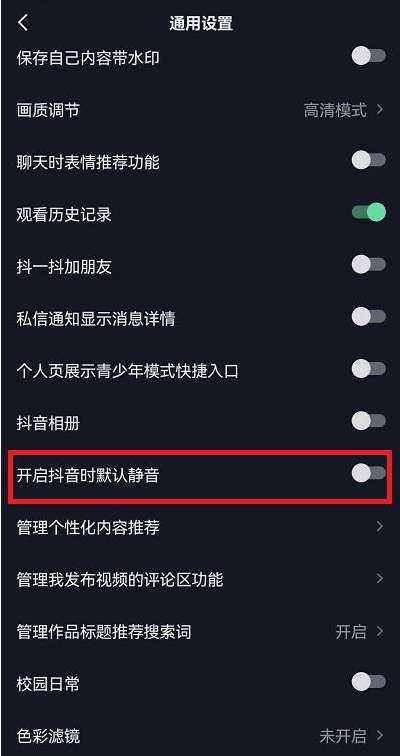 4、随后,找到并打开【打开抖音时为静音】功能即可。