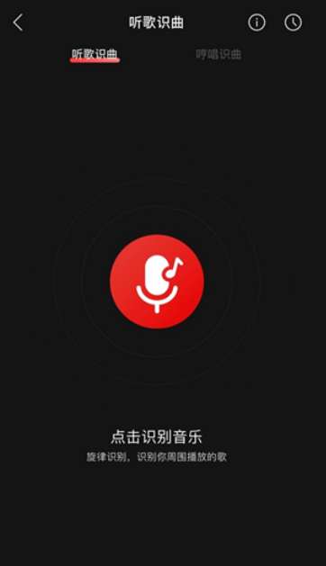 注:如果您的听歌识曲界面,如下图所示(旧版),则还未更新至有歌词识曲的版本。