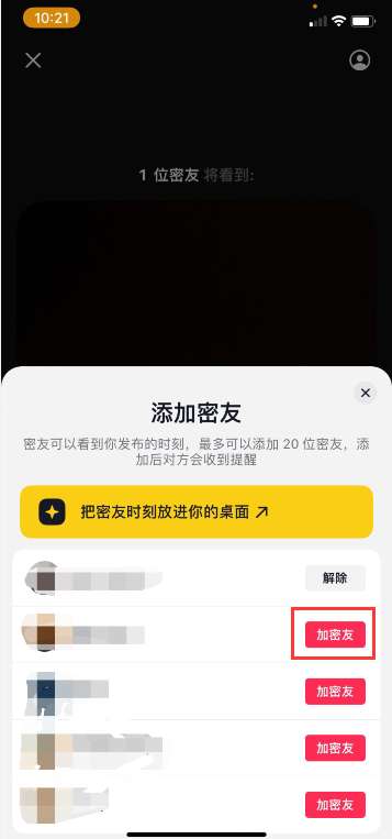 3、找到想要设置为密友的好友,点击右边的加密友即可。