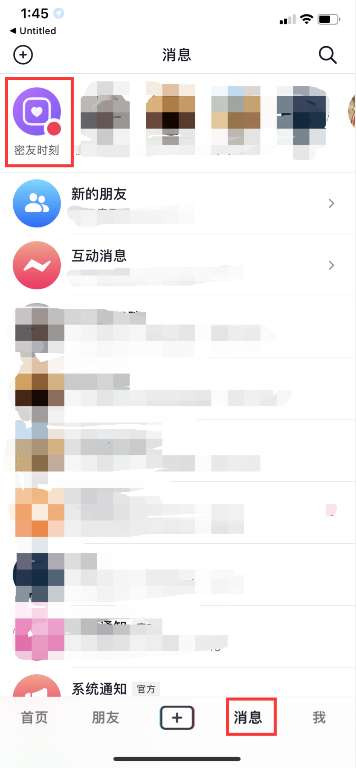 1、开启抖音app,在消息界面中点击左上方的密友时刻。