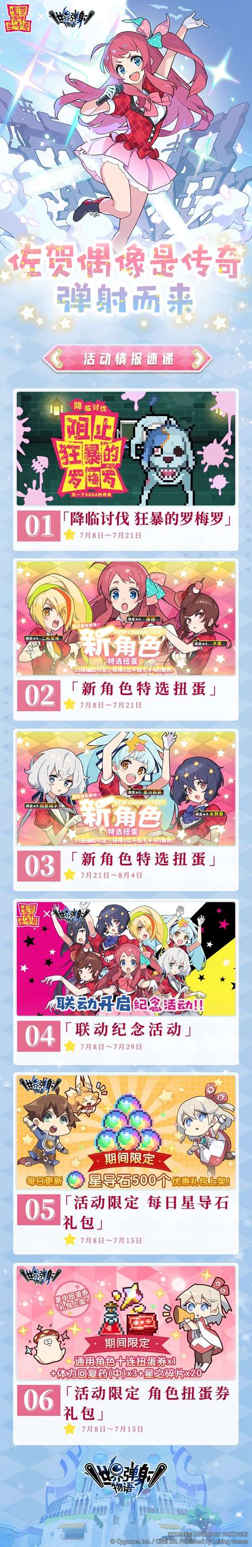 《世界弹射物语》与《佐贺偶像是传奇》的联动活动即将正式开始!我们为各位冒险者整理了本次联动的活动情报速递。精彩活动即将开启,期待冒险者的游玩!
