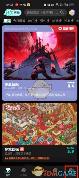 1、首先打开taptap软件,进入到首页中后我们需要点击右下角的【我的游戏】;