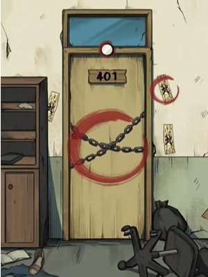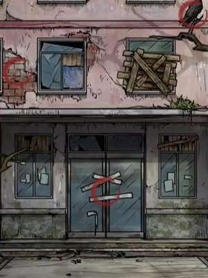 1、首先我们需要前往到废旧的宿舍楼前,点击【墙壁】【乌鸦】【封条】即可。