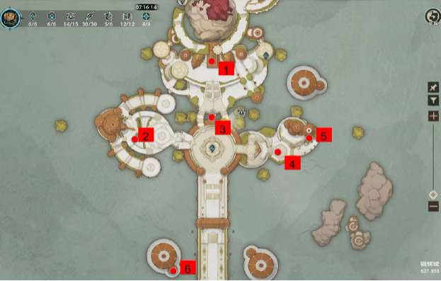 6号钥匙在浮空台子的桌子上,需要飞行或者搭tizi过去。