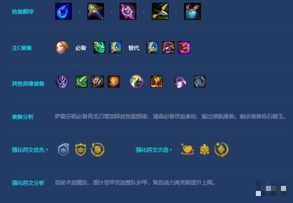 前期三玉两斗过渡,萨勒芬妮装备可以给卡尔玛带。中期潘森装备可以给永恩带。