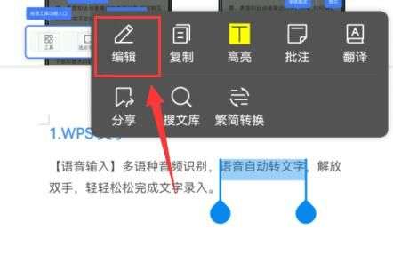 1.首先打开WPS Office,长按想要修改行距的文字,如下图所示。