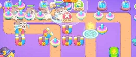 1、保卫萝卜4阿波与魔法宝藏第12关主要使用陀螺和吸铁石这两个炮台。