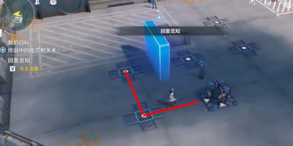 5、开启解开机关锁任务,先打算阻碍的两个木箱,在下图位置切换障碍物状态。