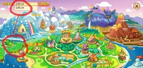 浆果丛林任务其实是可以自动寻路的,玩家们点击任务条就可以自动寻路到浆果丛林了,如果想要自己找到的话,那么如上图所示来到大地图之后,往右上角移动就会显示该地点为浆果丛林了。