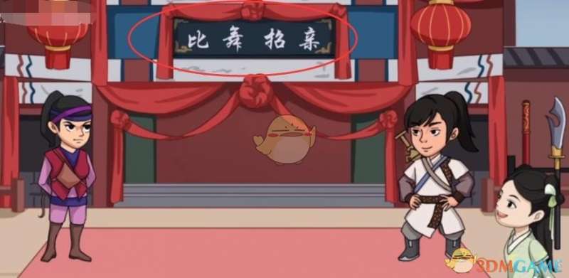 1、点击【比武招亲】的牌匾三下,字就会更换成【比舞招亲】