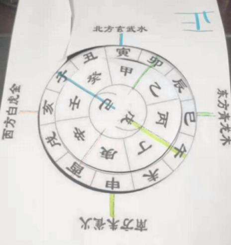 按照以上角度转动后,南方朱雀火对应的天干是"庚",地支为"申".