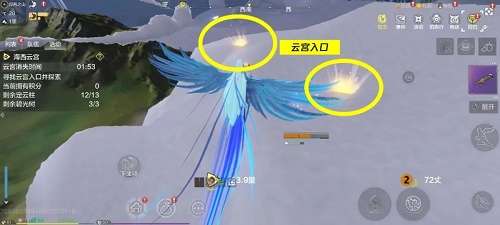 3、云宫入口非常明显,往海西云宫所在云朵一站,发光处就是入口了,钻进云洞顺着通道而行即可抵达云宫内部。