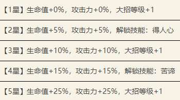 | 【得人心】密探2星解锁 | 干吉死亡后,为我方全体提供可吸收相当于自己80%攻击力的伤害的护盾(2回合) |