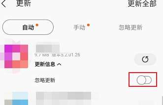 进入更新找到相关应用点击忽略更新右侧的按钮即可忽略应用