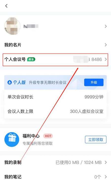第三步:点击“个人会议号”。