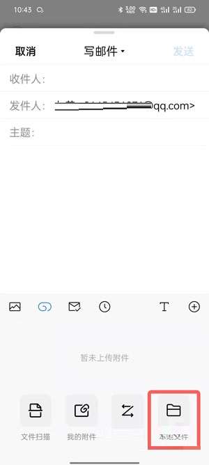 第二步:编辑好邮件后,点击左下角的【附件】按钮,如下图所示。