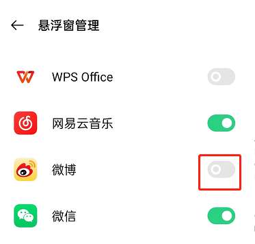 注:在手机设置中,首先开启微博的悬浮窗功能。