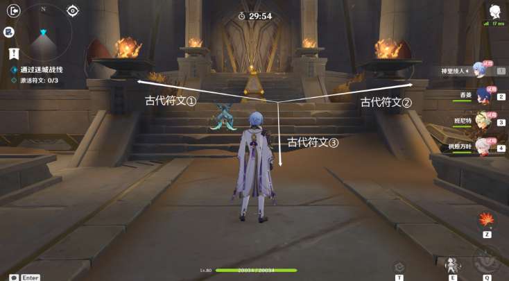 4、进入挑战后,可以前往不同的方向激活古代符文,一共有3个。