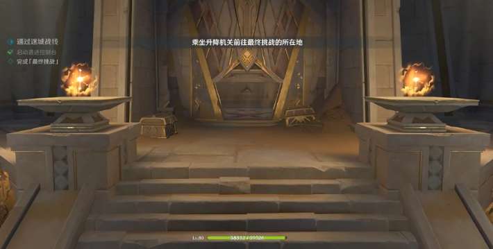 3、初始位置在中间。将三处古代符文激活后,即可回到初始房间开启电梯上楼,进入最终试炼完成挑战。