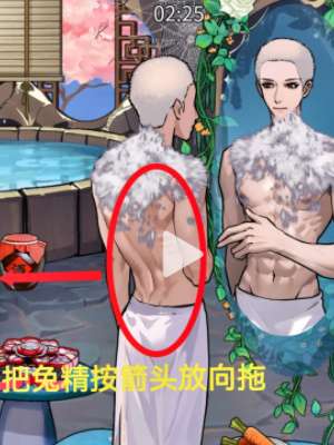 1、左滑打开竹帘,把仙桃拖给兔子。