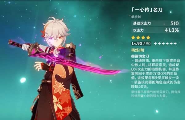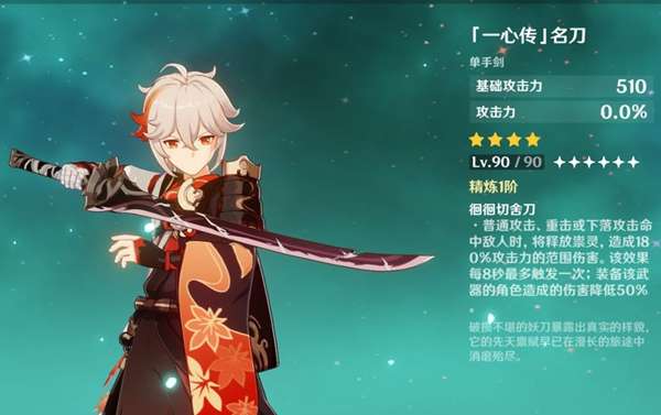 1、笼钓瓶一心这个单手剑武器非常适合【神里绫华】、【刻晴】等角色使用。
