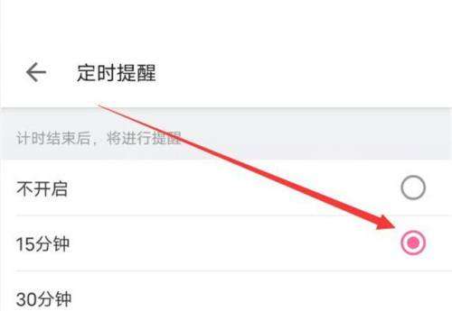 第五步:在“定时提醒”窗口中,选中【15分钟】完成。
