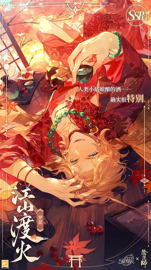SSR画灵[江山渡火]属特殊联动画灵,具备获取时台词特别展示;突破后具备横幅卡面、[流光]效果,可设为登录界面。
