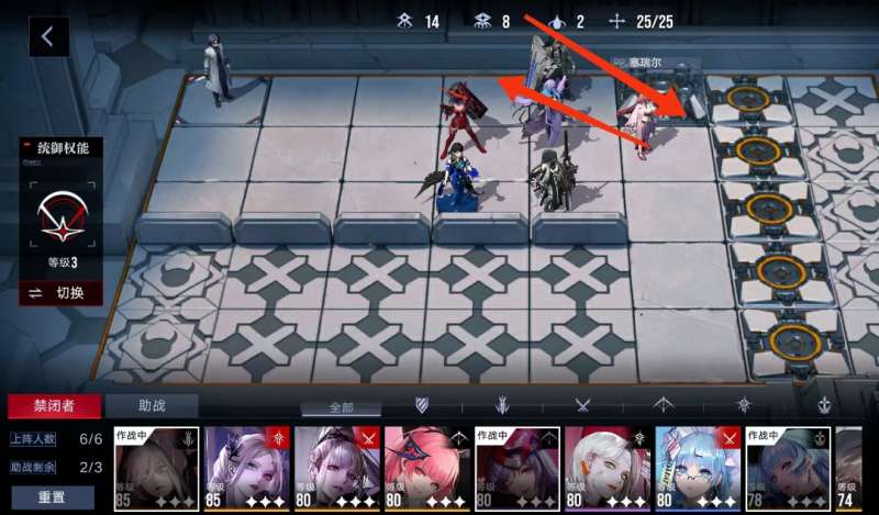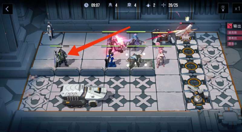 躲过第一波【重装白骑士炮手】的炮击后,把生命值最高的盾放到最后面吸引火力。
