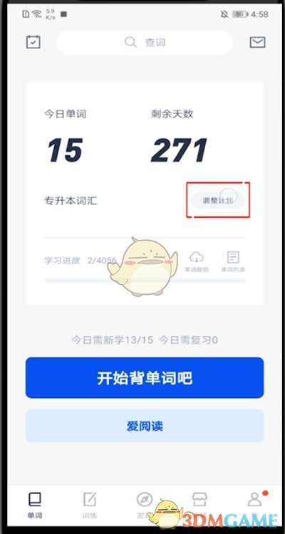 《百词斩》修改计划天数方法:
