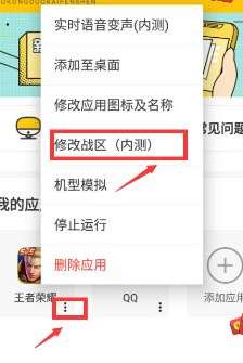 在软件市场中搜索定位修改,将手机定位修改再打开游戏中的战区修改即可。
