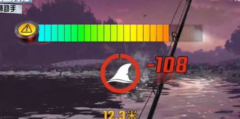 3、钓大型鱼的关键是巨物BUFF,触发巨物BUFF的关键则是奇珍鱼,当游戏提醒出现有奇珍鱼的时候不要直接吊起来,可以通过摆动,慢慢收紧放松鱼线,让珍稀鱼在最远距离拉爆鱼竿,这时候会提醒升级鱼竿我们再且施加巨物BUFF。