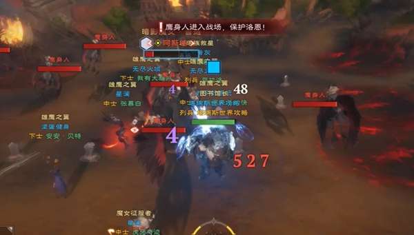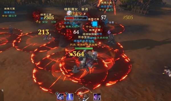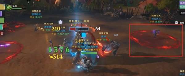 暗影魔女本体出现前,会在场上召唤三个分身,释放范围伤害,这里我们需要所有人集火一个分身,再依次集火打掉所有分身,建议按照npc(洛恩)的攻击顺序依次集火