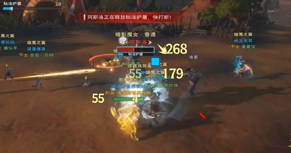 暗影魔女释放护盾技能(护盾很厚),这时候我们需要释放打断技能进行打断,系统也会给予提示