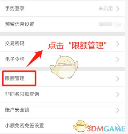 2、进入安全中心页面后,找到并点击下方的限额管理功能。