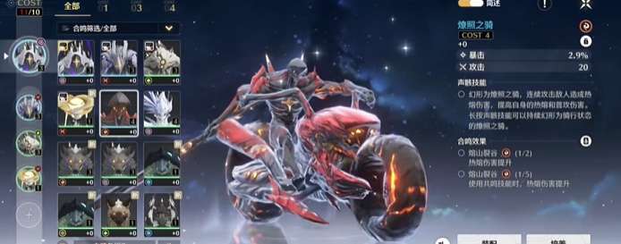4、摩托车还会有自己的属性哦,连续攻击敌人造成热熔伤害,提高自身的热熔和普攻伤害。长按声骸技能可以持续幻形为骑行状态的燎照之骑。