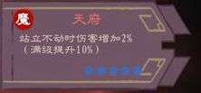 天府:玩家站立不动时伤害增加(一级提高2%,满级提高10%)