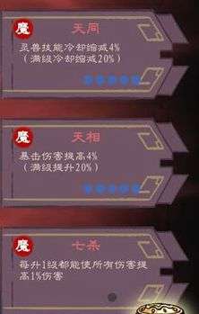 天同:可以使灵兽的技能冷却缩短(一级缩短4%,满级缩短20%)