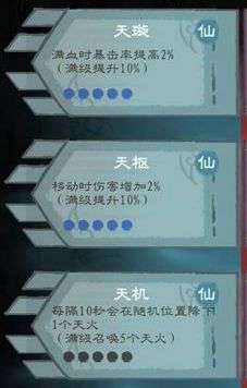 天机:每个十秒随机降下一个天火(一级一个,满级5个)